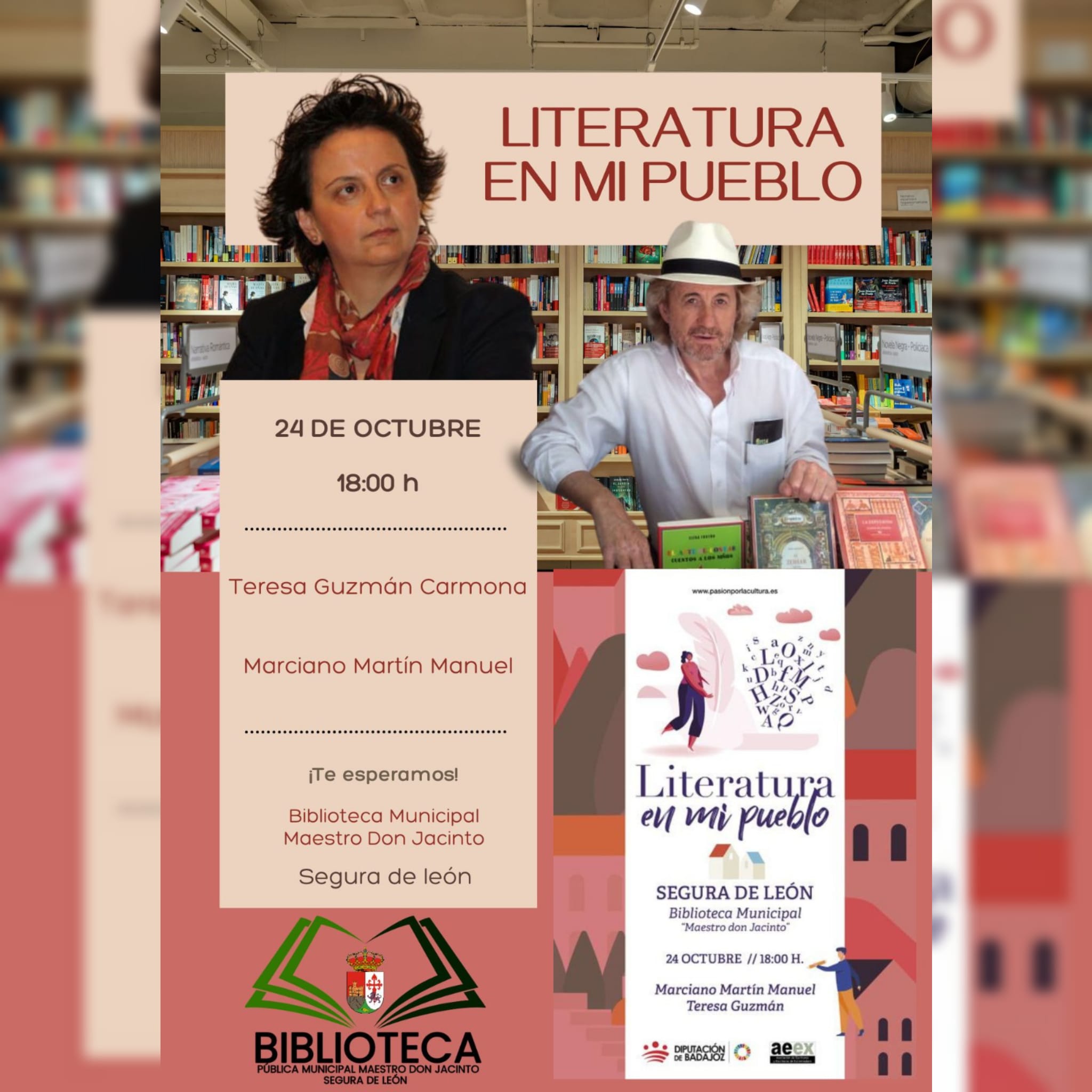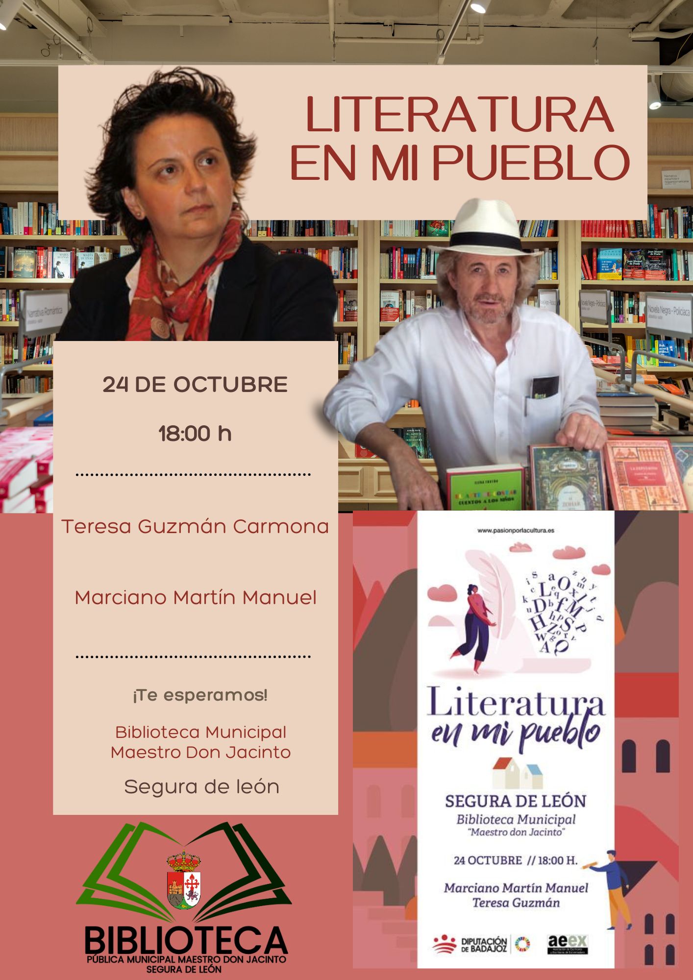 Este 24 de octubre a las 18:00 h. en la Biblioteca Municipal “Maestro don Jacinto” de Segura de León tendrá lugar una nueva edición del programa Literatura en mi pueblo.