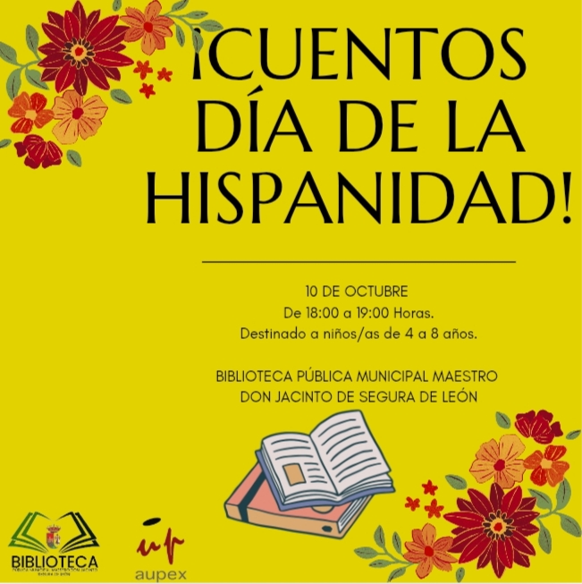 El viernes 10 de octubre realizaremos en la Biblioteca Pública Municipal de Segura de León Maestro Don Jacinto el siguiente taller: "Cuentos y manualidades " Día de la Hispanid(...)