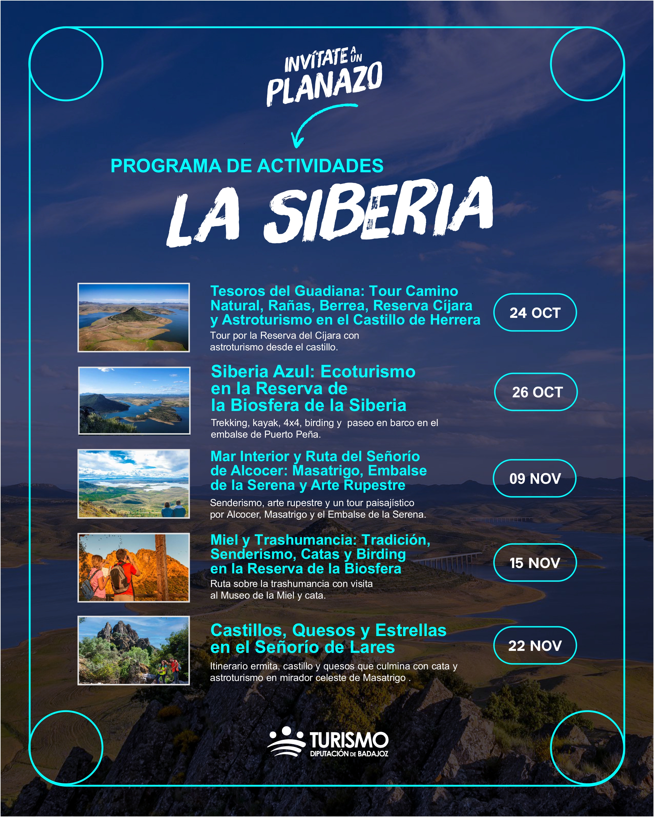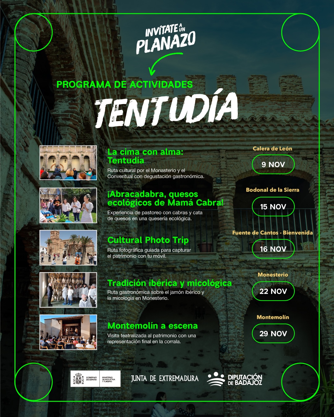 📆Del 18 de octubre al 29 de noviembre, podrás disfrutar de 10 actividades gratuitas en todos los municipios de Tentudía: