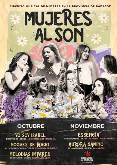 El otoño de 2025 llega cargado de música femenina extremeña gracias al Área de Igualdad de la Diputación de Badajoz, que llevará a 5 municipios de la provincia un elenco de mujeres intérpretes. 💜