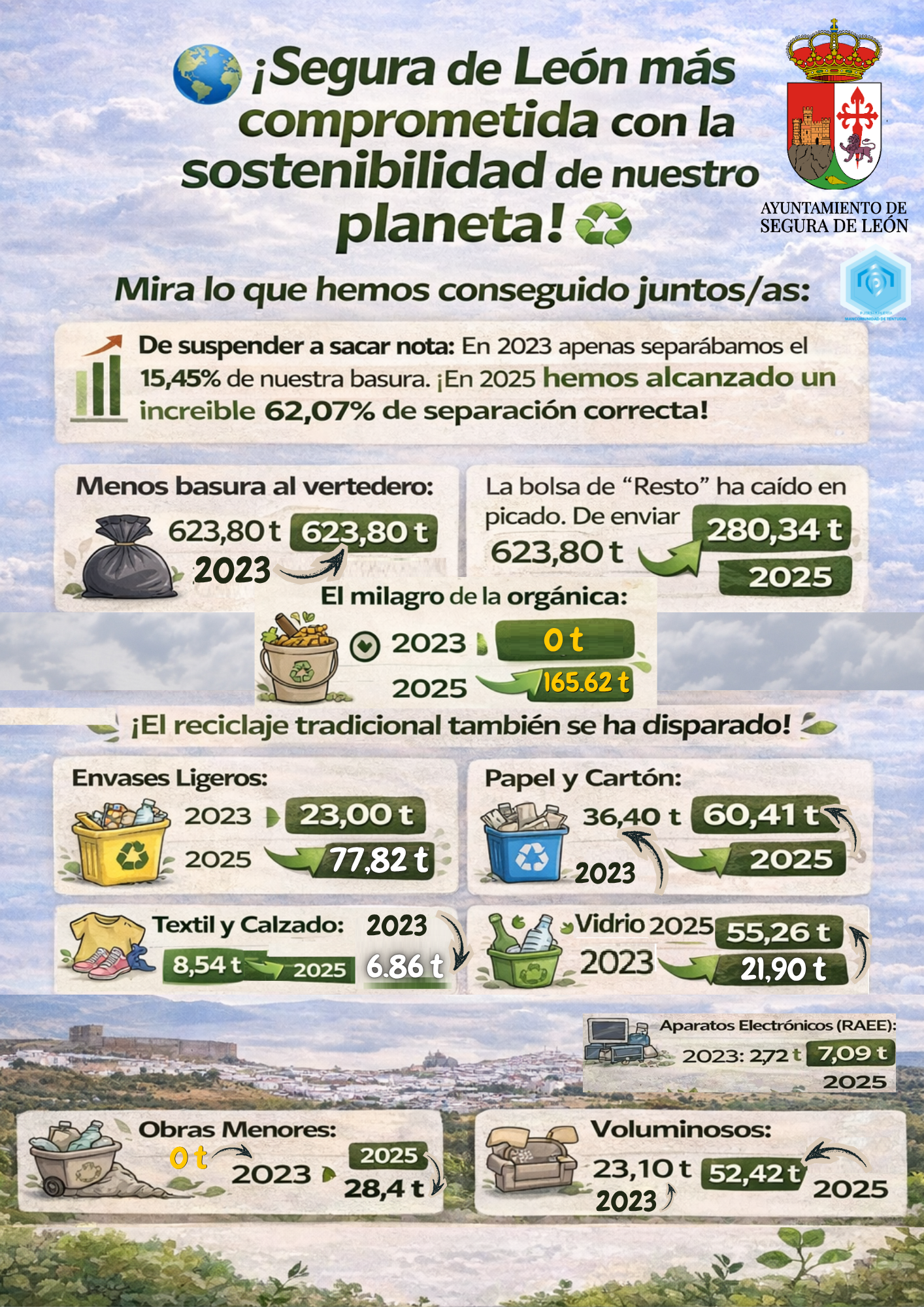 📈 De suspender a sacar nota: En 2023 apenas separábamos el 15,45% de nuestra basura. ¡En 2025 hemos alcanzado un increíble 62,07% de(...)