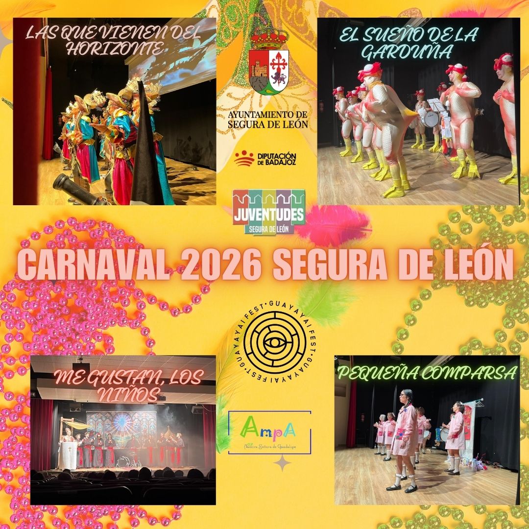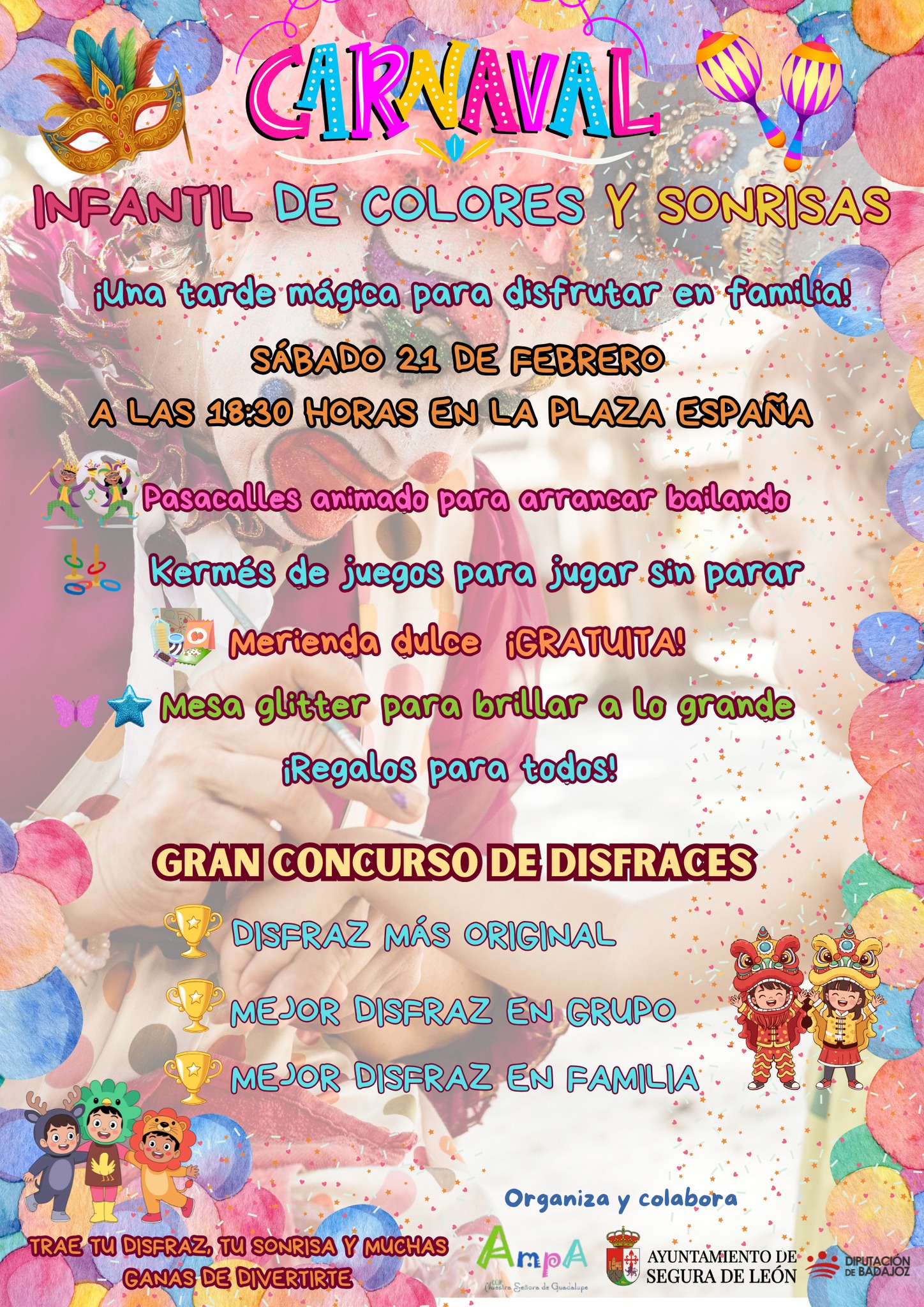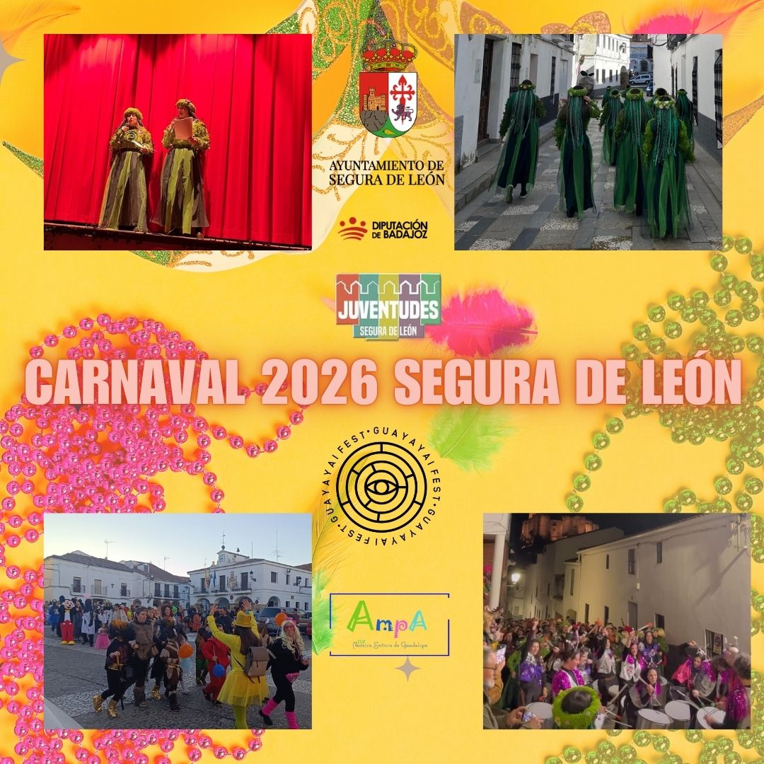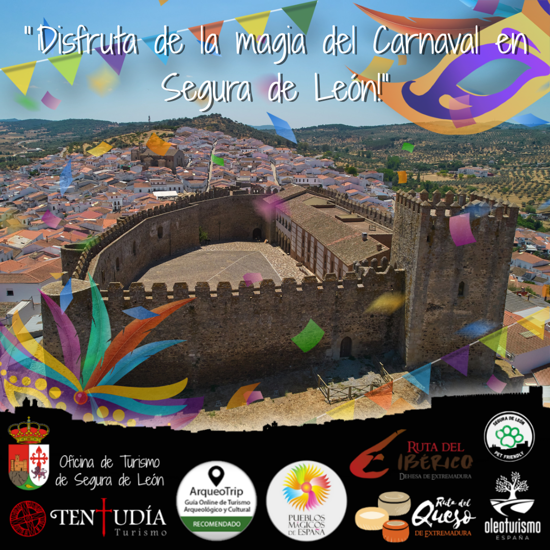 🥳 ¡Este fin de semana llega el carnaval a Segura de León! Música, bailes, risas y diversión inundan nuestras calles este sábado. Pero no solo podrás disfrutar del carnaval, también tienes disponibles otros planes igual de interesantes. A continuación los detallamos todos: