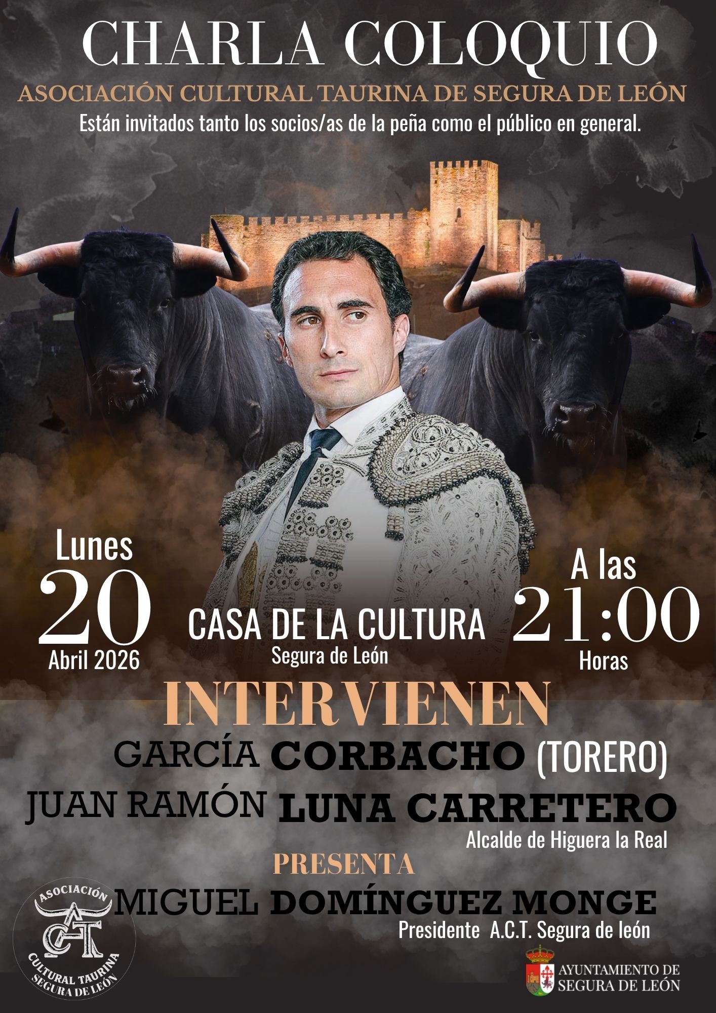 La Asociación Cultural Taurina de Segura de León te invita a una interesante charla coloquio abierta tanto a socios/as como al público en general.