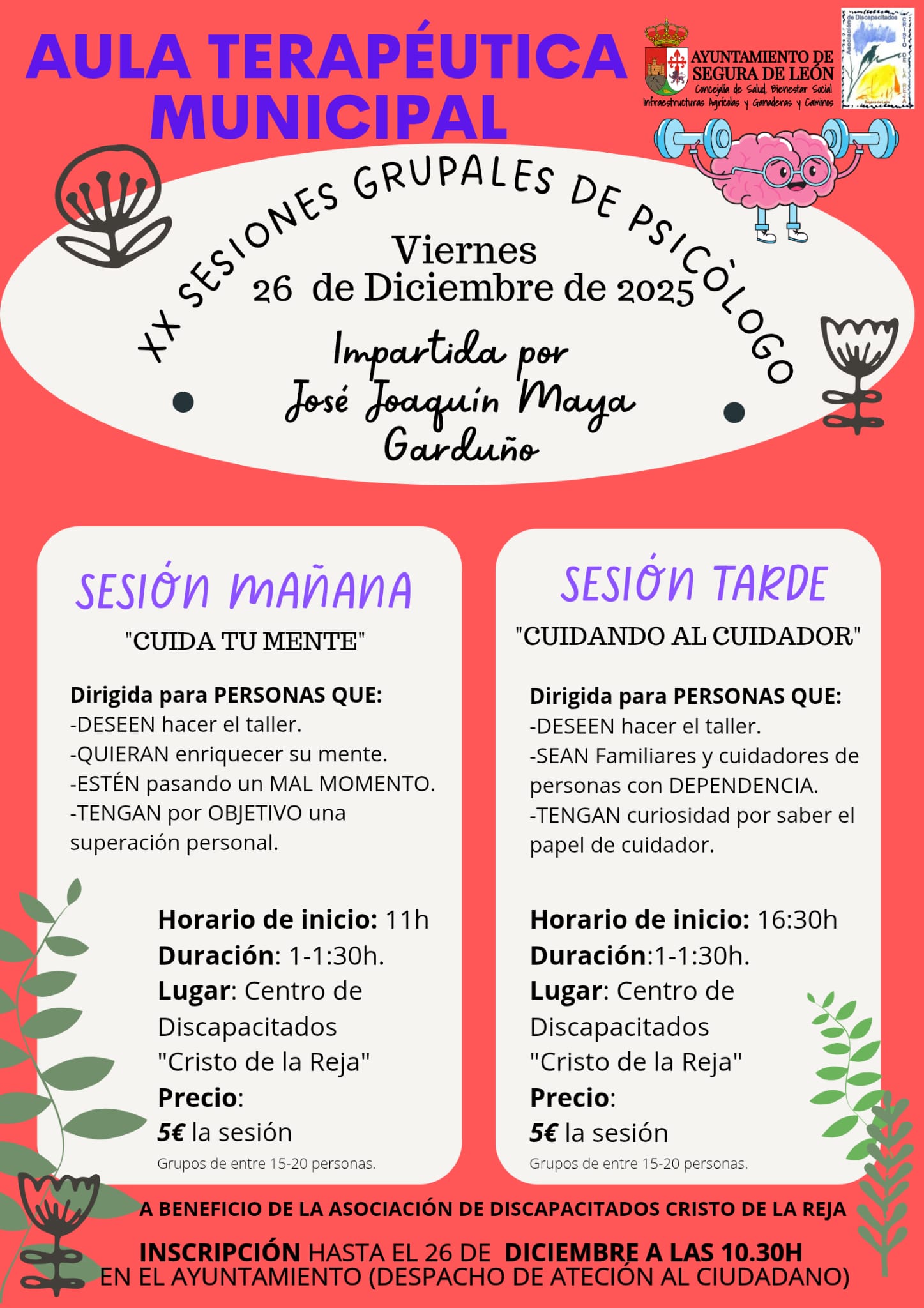 El próximo viernes 26 de diciembre de 2025 te invitamos a participar en las XX Sesiones Grupales de Psicología, impartidas por José Joaquín Maya Garduño.