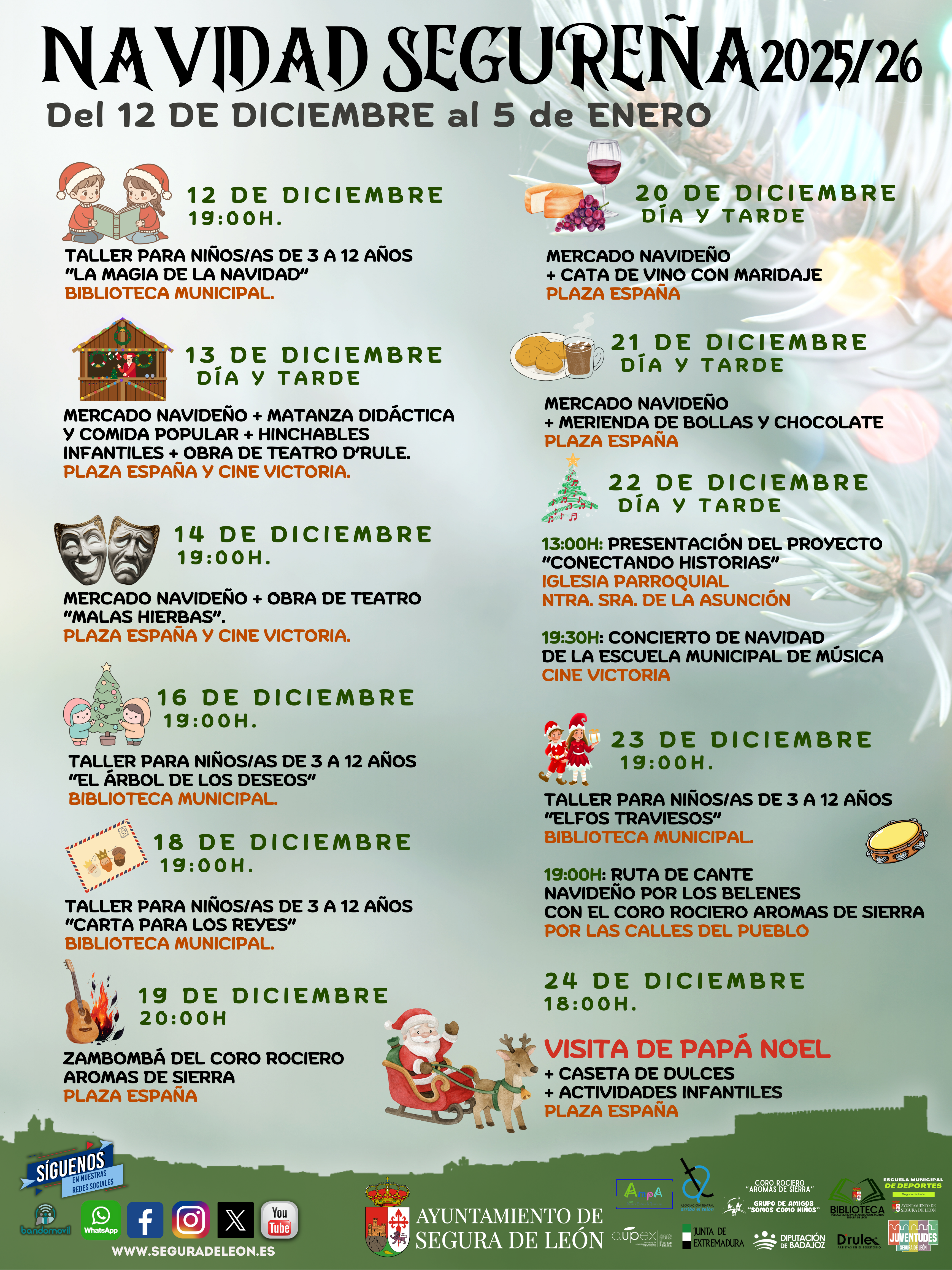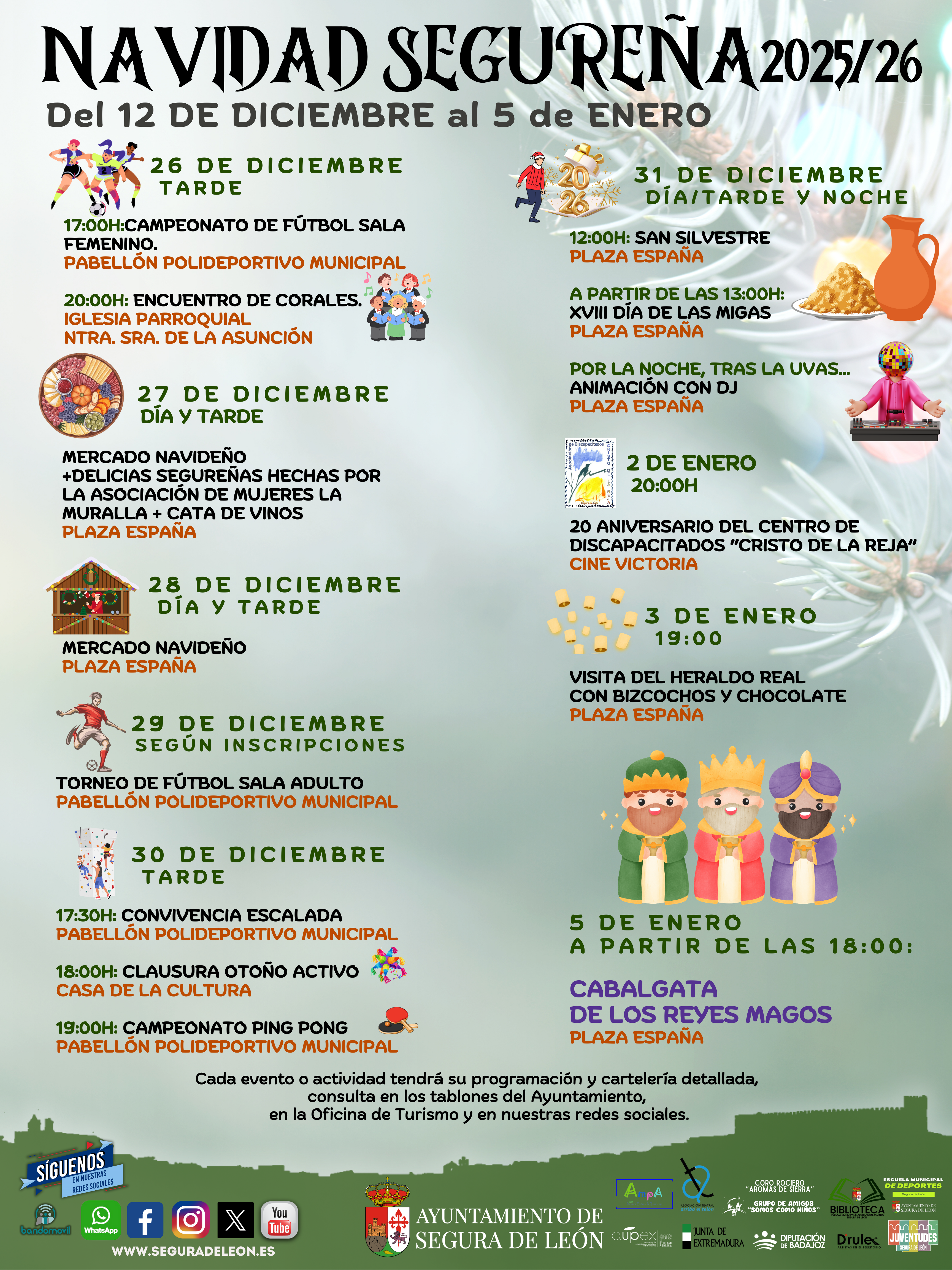 Llegamos de nuevo al fin de semana. Durante estos días, continuamos con la Navidad Segureña 2025/2026: un calendario repleto de actividades pensadas para todas las edades.
