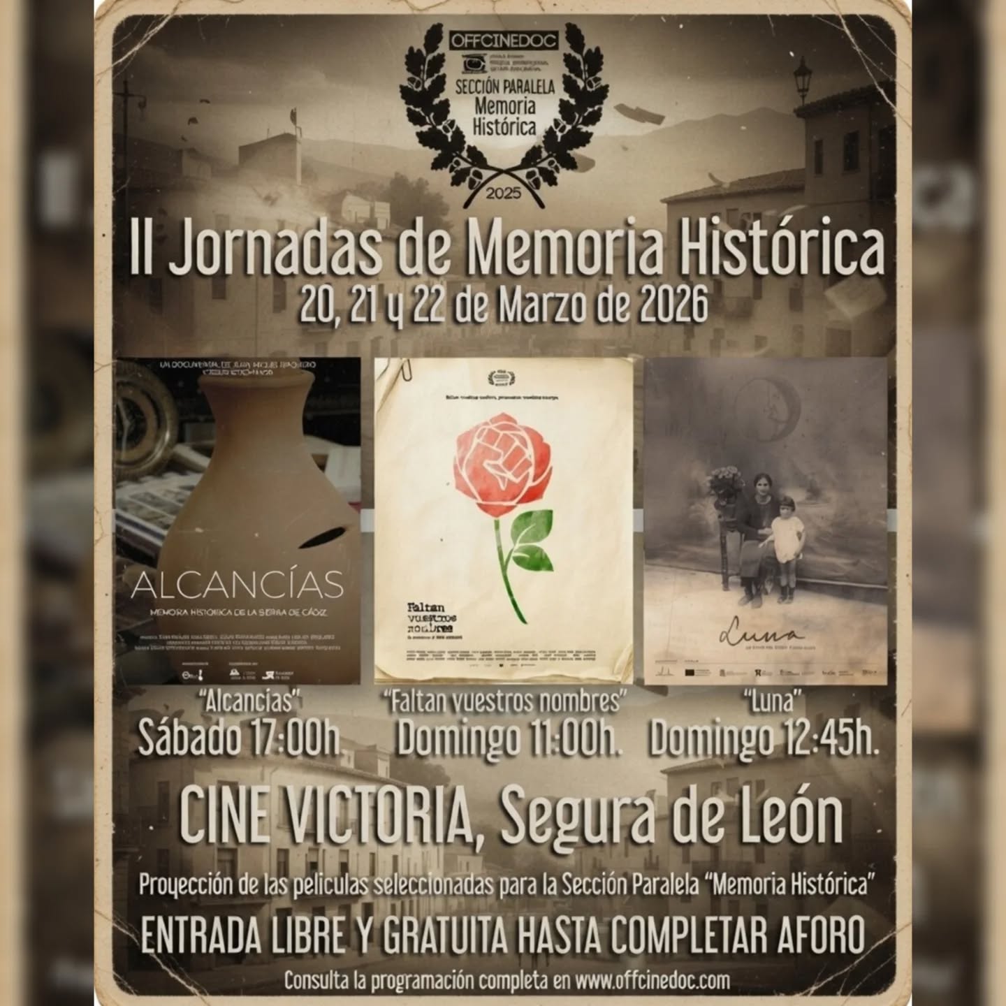 Durante tres días, Segura de León será un espacio de encuentro para recordar, escuchar y reflexionar sobre nuestra historia reciente.