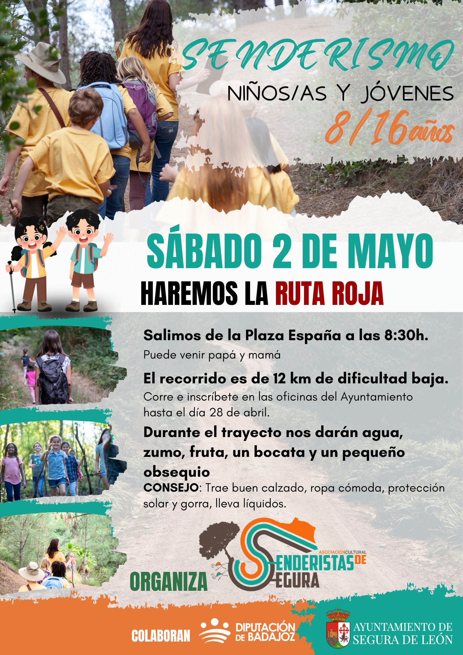 El próximo sábado 2 de mayo llega una actividad organizada por la asociación Senderista de Segura perfecta para niños/as y jóvenes de 8 a 16 años: ¡una jornada de senderismo llena de diversión!