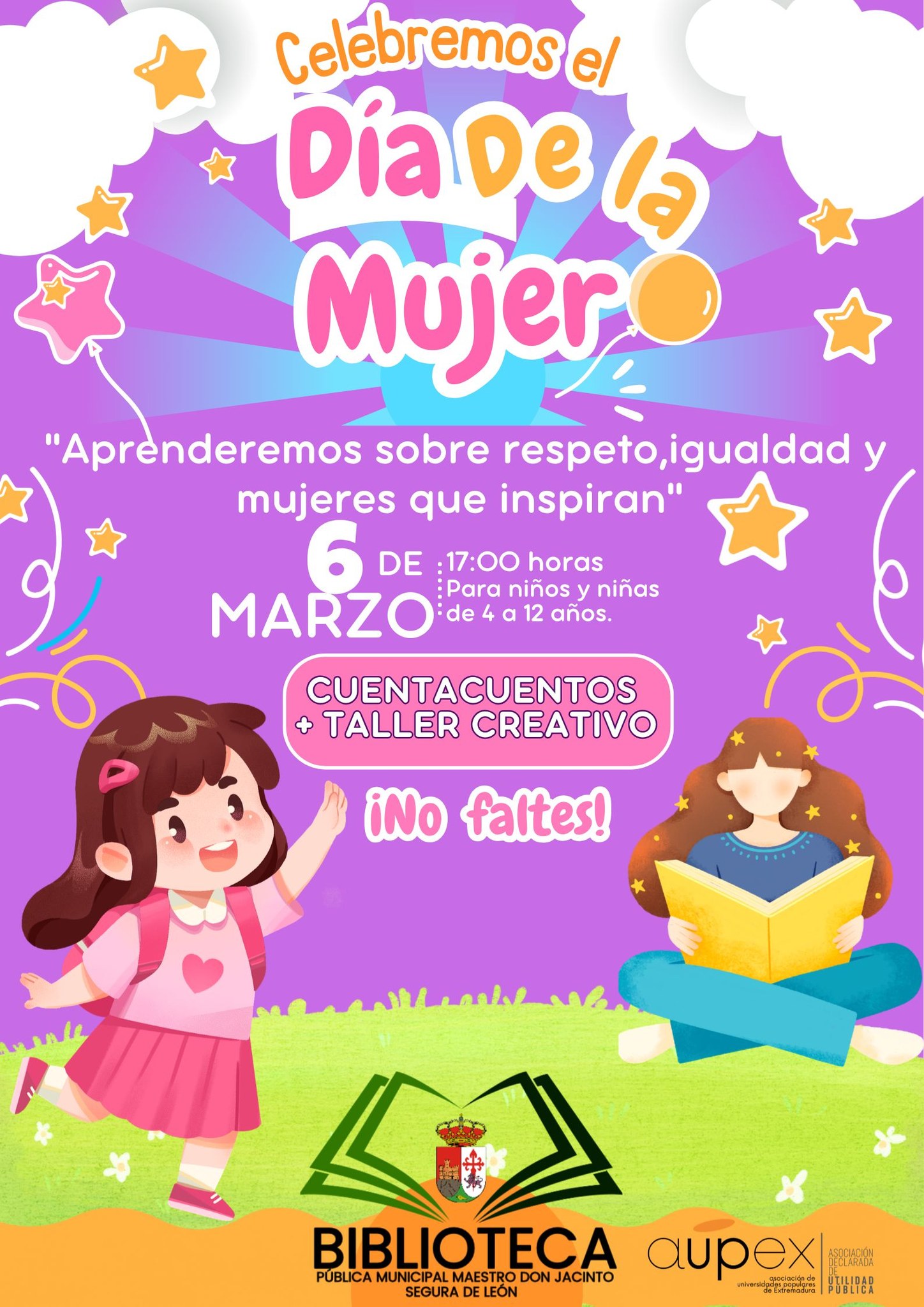 ¡Carnaval de Cuentos! Ven a la Biblioteca Pública Municipal de Segura de León Maestro Don Jacinto disfrazado y disfruta de historias llenas de magia, risas y fantasía.