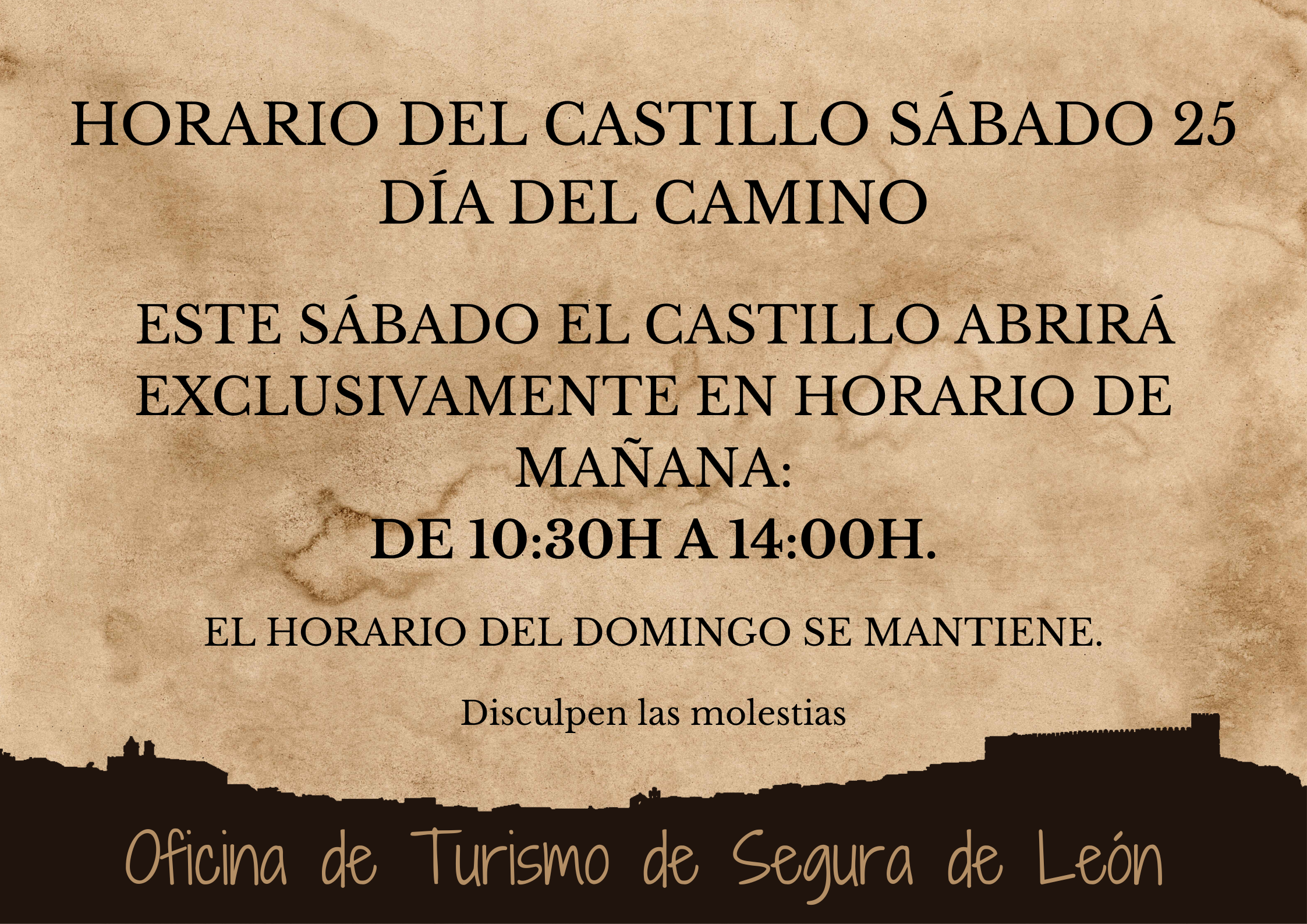 ☀️ Nos vamos acercando al fin de semana, el último de abril. ¿Conoces nuestro castillo medieval del siglo XIV? El Castillo Santiaguista de Segura de León se encuentra entre los castillos mejores conservados de toda Extremadura. Construido en lo alto de una colina, fue Sede de la Encomienda Mayor de León hasta el siglo XIX. Si quieres descubrir más acerca de su historia y recorrer sus murallas, te dejamos el horario para este fin de semana 🏰: -