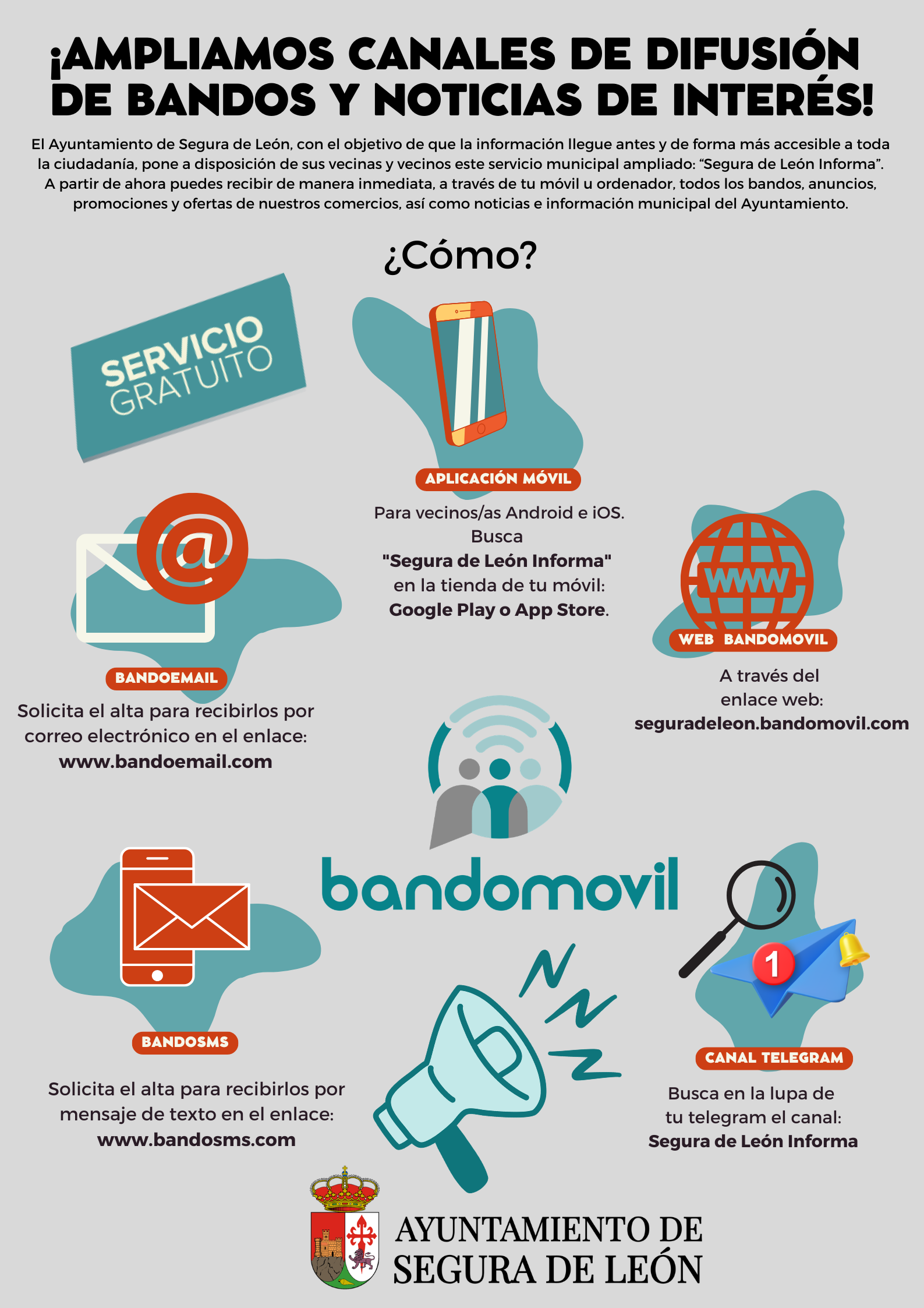 El Ayuntamiento de Segura de León sigue ampliando servicios para que la información municipal llegue antes y de forma más sencilla a todos los vecinos y vecinas.