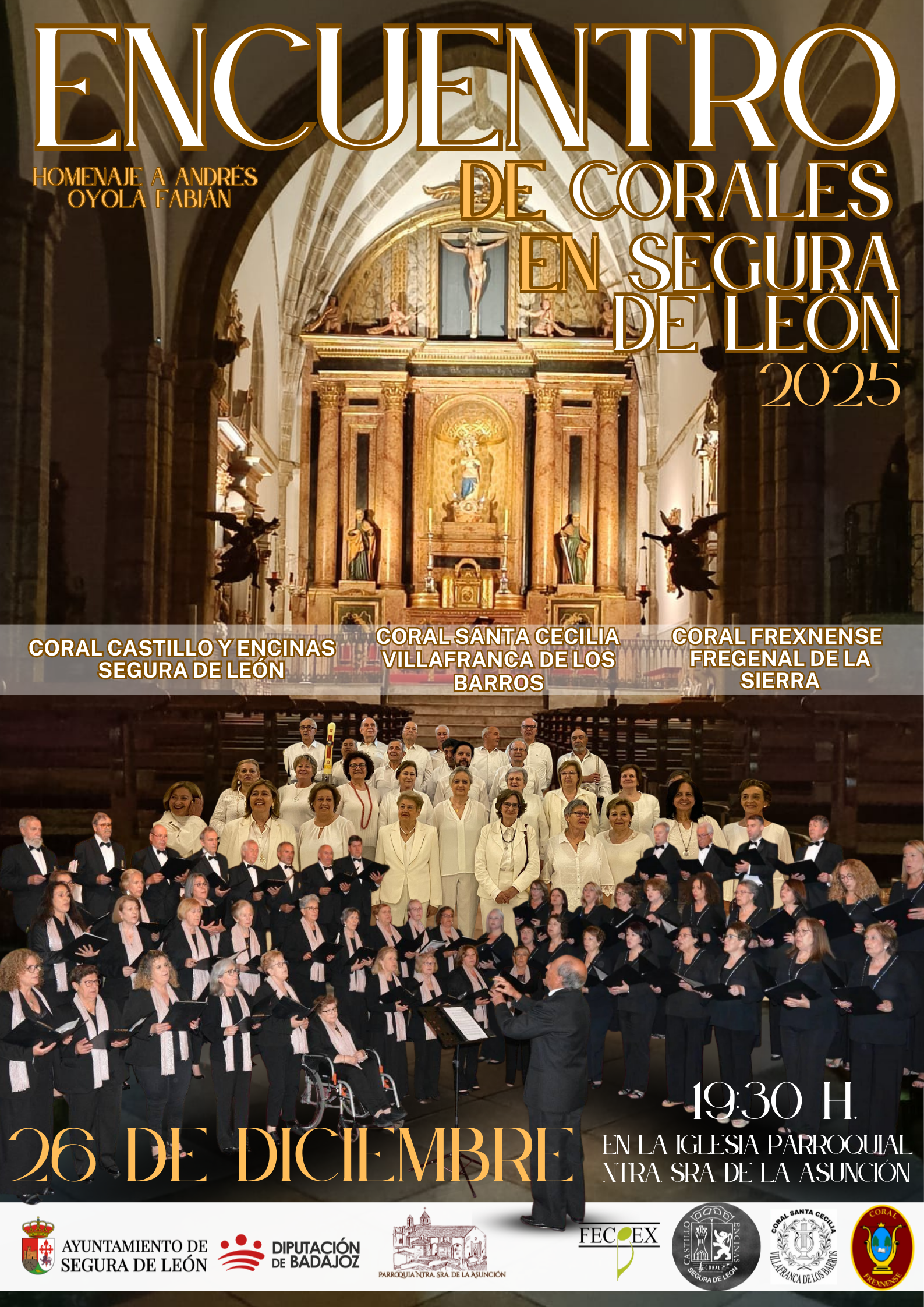 El próximo viernes, te invitamos a disfrutar de una velada muy especial llena de música y emoción. El Encuentro de Corales 2025 en Segura de León, en homenaje a Andrés Oyola Fabián.