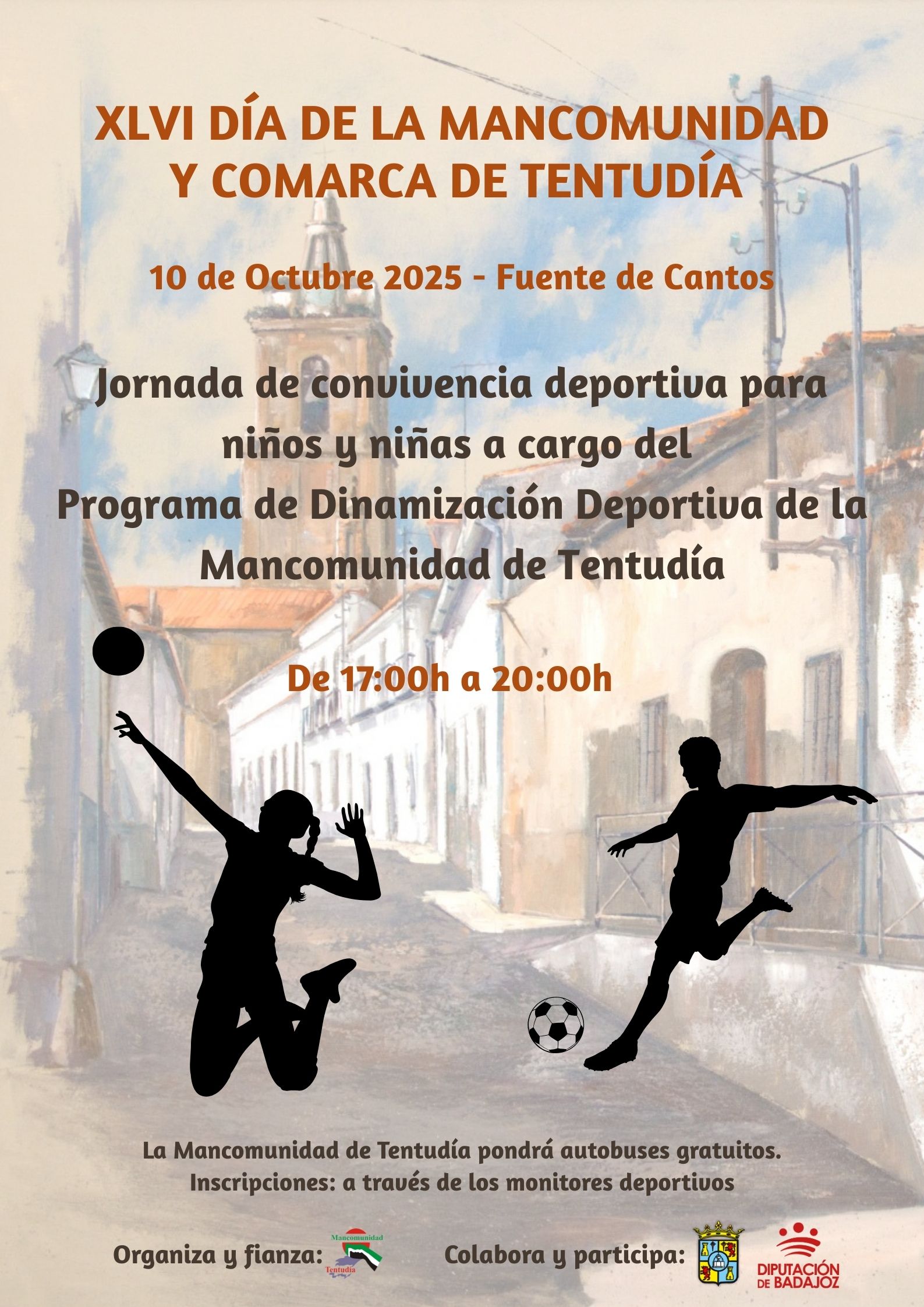 XLVI Día de la Mancomunidad y Comarca de Tentudía2025-09-22 12:43:09Turismo y CulturaProgramación del 𝐃𝐢́𝐚 𝐝𝐞 𝐥𝐚 𝐌𝐚𝐧𝐜𝐨𝐦𝐮𝐧𝐢𝐝𝐚𝐝 𝐲 𝐂𝐨𝐦𝐚𝐫𝐜𝐚 𝐝𝐞 𝐓𝐞𝐧𝐭𝐮𝐝𝐢́𝐚!