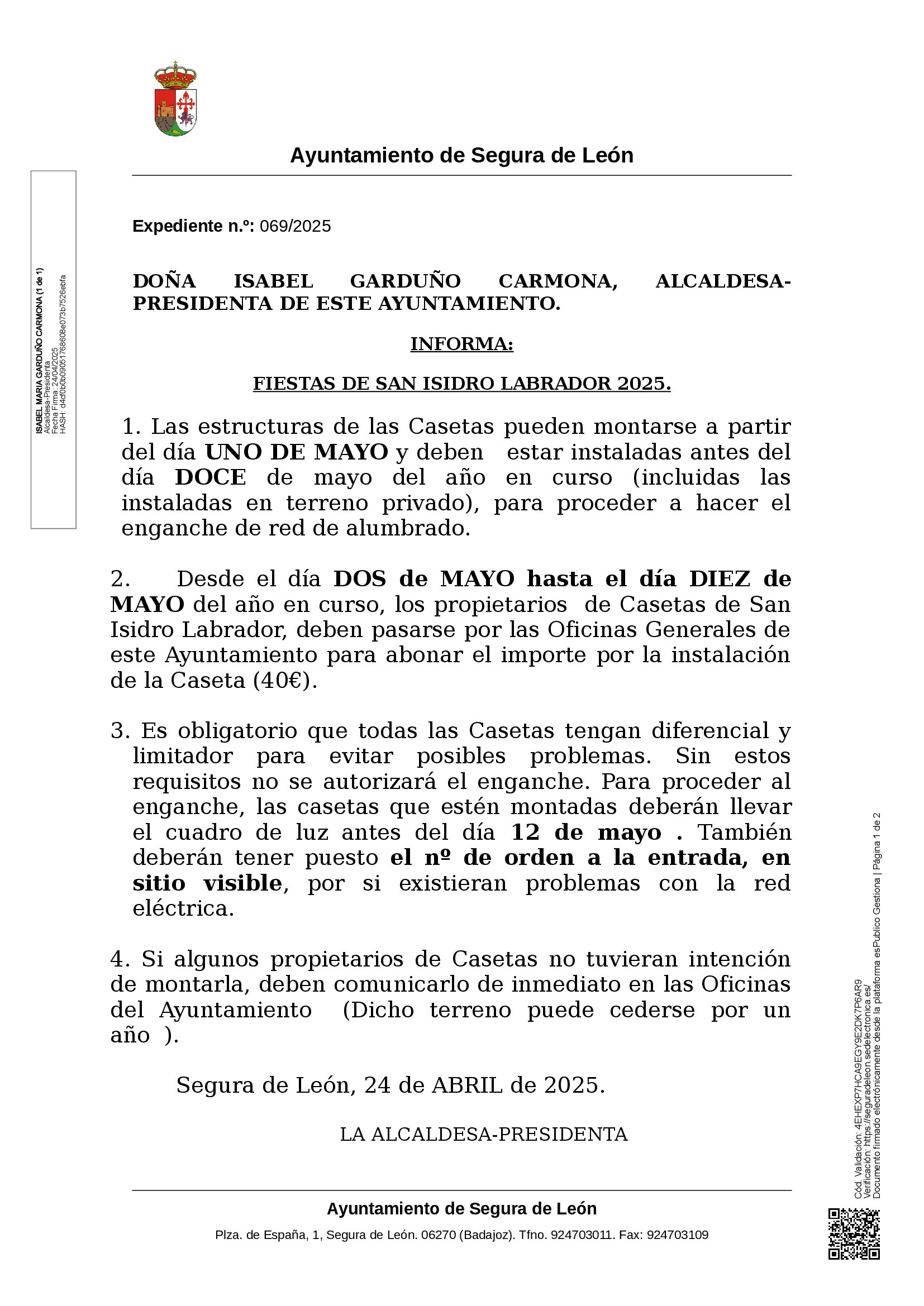 2. Desde el día DOS de MAYO hasta el día DIEZ de MAYO del año en curso, los propietarios de Casetas de San Isidro Labrador, deben pasarse por las Oficinas Generales de(...)
