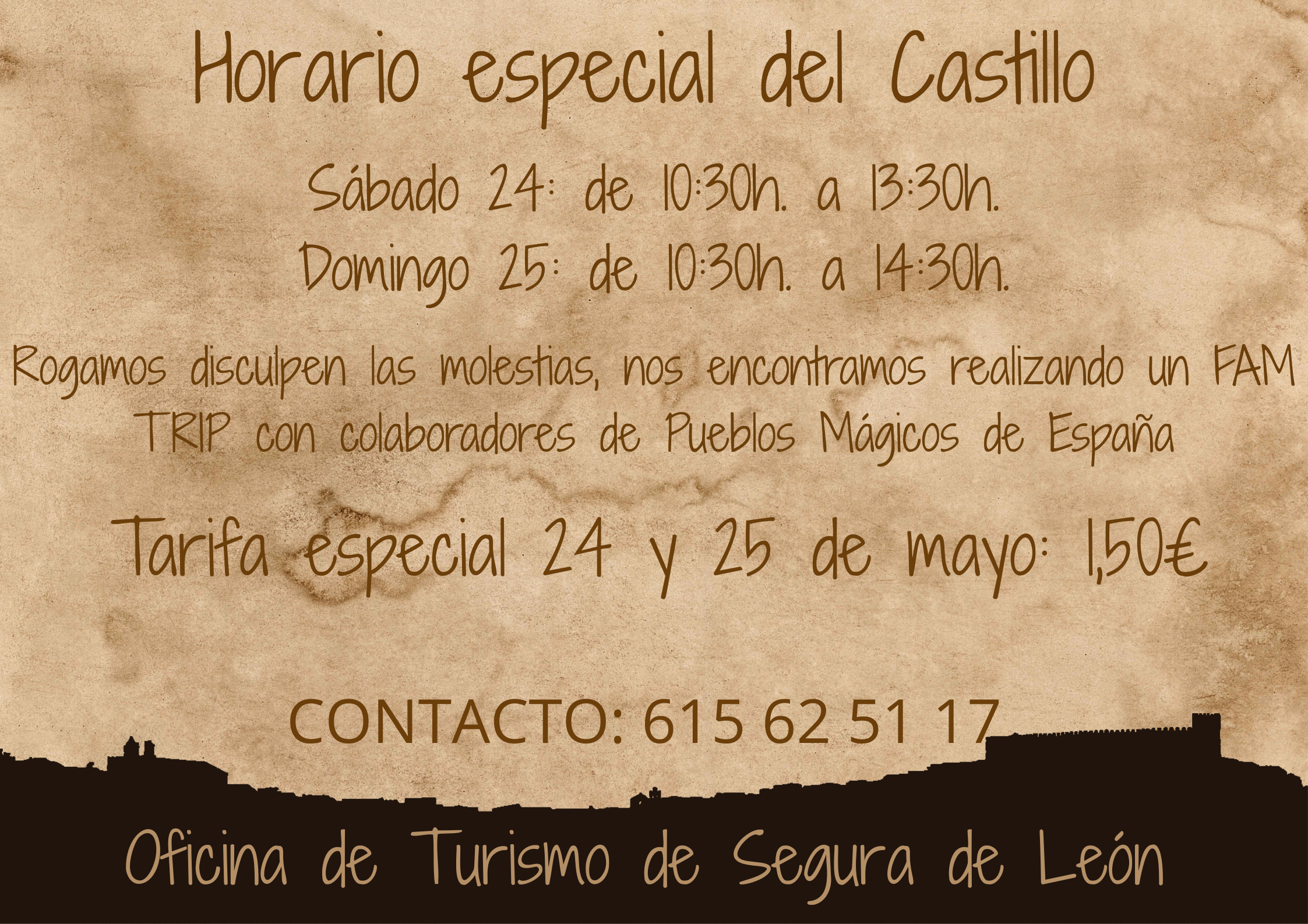 Debido a esta visita el horario del castillo el sábado 24 se verá afectado. Rogamos disculpen las molestias.